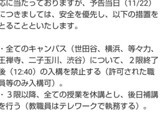 東京都市大学に爆破予告 「22日午後2時~8時に実行する」 ⇒ 学校は21日には把握していたことが判明し対応に疑問の声 2021.11.22 爆破予告で3限以降消滅。 続きを読む ——— Source: 銃とバッジは置いていけ 東京都市大学に爆破予告 「22日午後2時~8時に実行する」 ⇒ 学校は21日には把握していたことが判明し対応に疑問の声