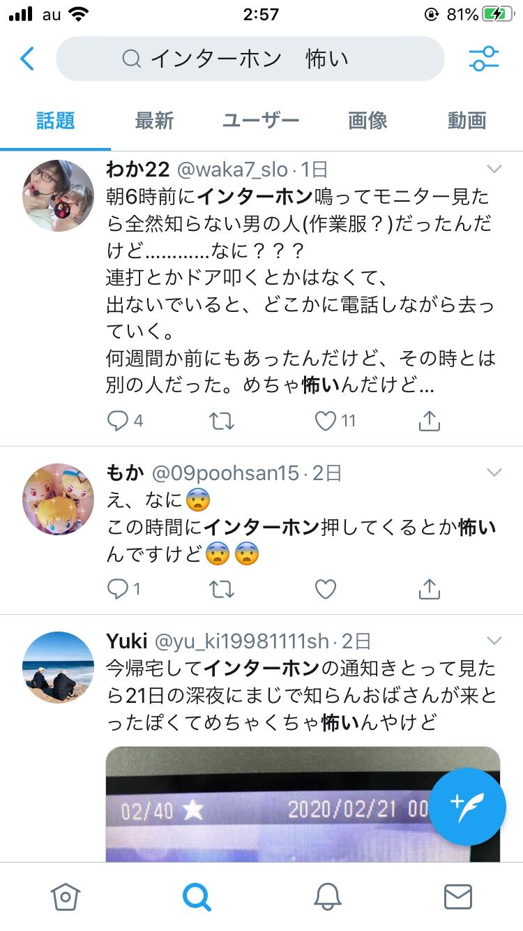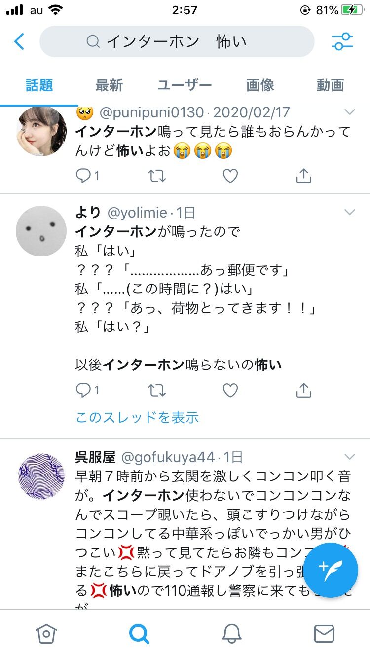 【画像】「インターホン 怖い」でTwitter検索すると現実に存在する鮮度高い怖え話が見れるで 2020.02.26 1: 風吹けば名無し 2020/02/26(水) 02:59:50.64 ID:ft27Z7Kl0 続きを読む ——— Source: 哲学ニュースnwk 【画像】「インターホン 怖い」でTwitter検索すると現実に存在する鮮度高い怖え話が見れるで
